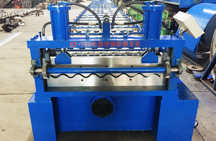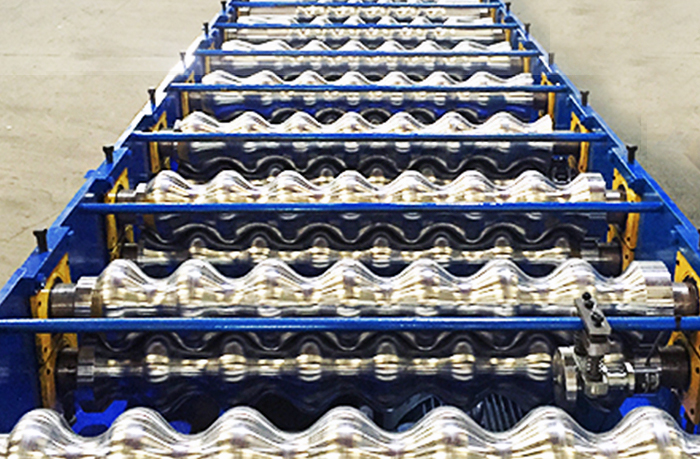 1、成形主機:機架為450H鋼焊接而成,牆板式結構,鏈輪鏈條傳動,25道滾壓成型,電機功率22KW,壓製厚度為0.8mm,成型速度25米/分,外形尺寸:13米×1.4米×0.87米,整機重量為:10噸。