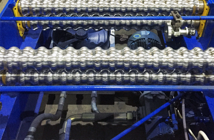 所有滾輪都是整體的通軸經過進口數控車床一次性加工而成,精度高,剛性強,壓出來的板平整無痕,速度可達25米每分鍾,效率極高。