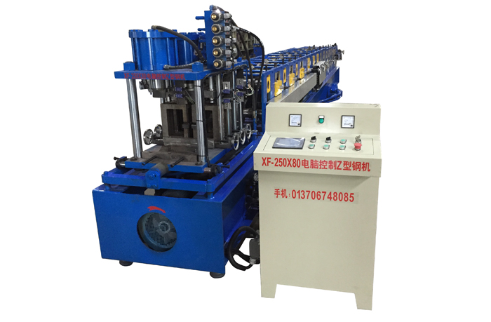 5、衝孔切割裝置:采用八柱液壓式結構,四隻衝孔缸,一隻切斷缸,結構緊湊,工作平穩。